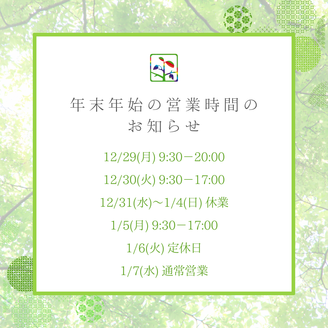 年末年始の営業時間・休業日について、お知らせさせていただきます。